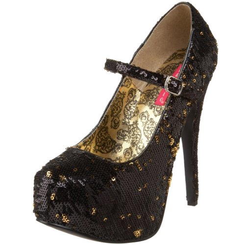 Bordello by Pleaser Women's Teeze-07Sq Pump,Black/Gold Sequins,12 M US Reviews